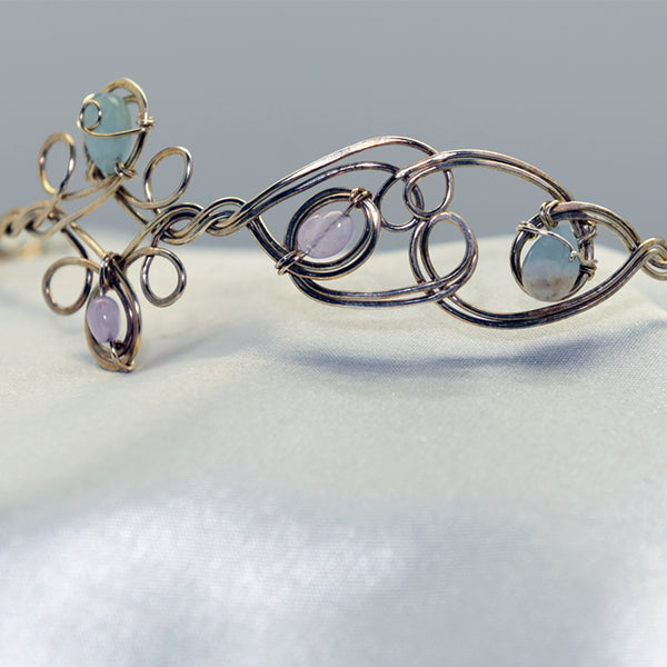 Materials: Amethyst, Beryl, Silver-covered copper wire